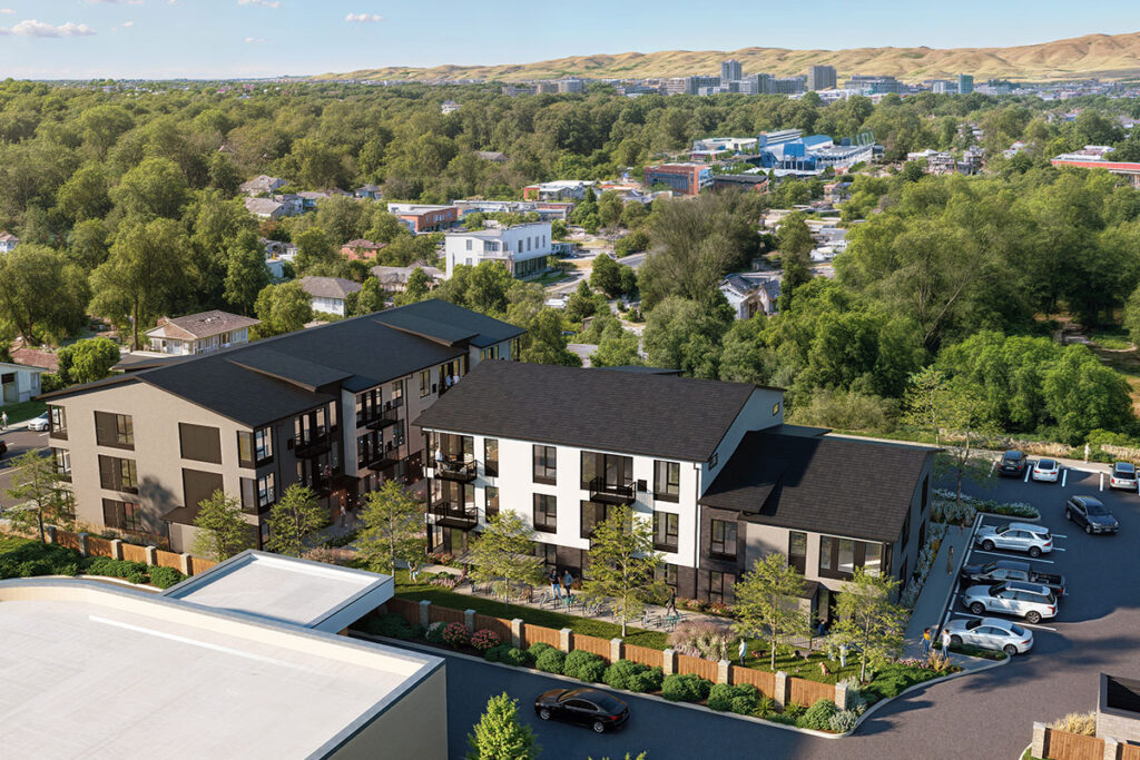 Description: 23 Single-Family townhomes within 10 minutes of downtown Boise. These three- and four-bedroom residences will feature private yards, rooftop terraces, 2 car garages, additional flex spaces for home office or a home gym, and modern finishes all while providing a price point in high demand in the Boise market.